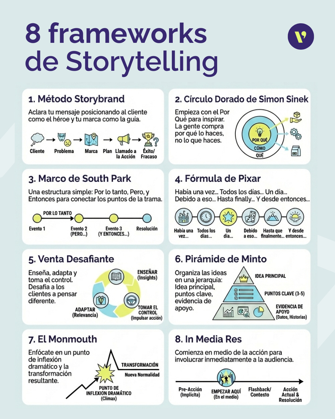 Estos son los 8 frameworks que usamos en visible para contar historias que conecten realmente con la audiencia, los puedes usar también con AI: